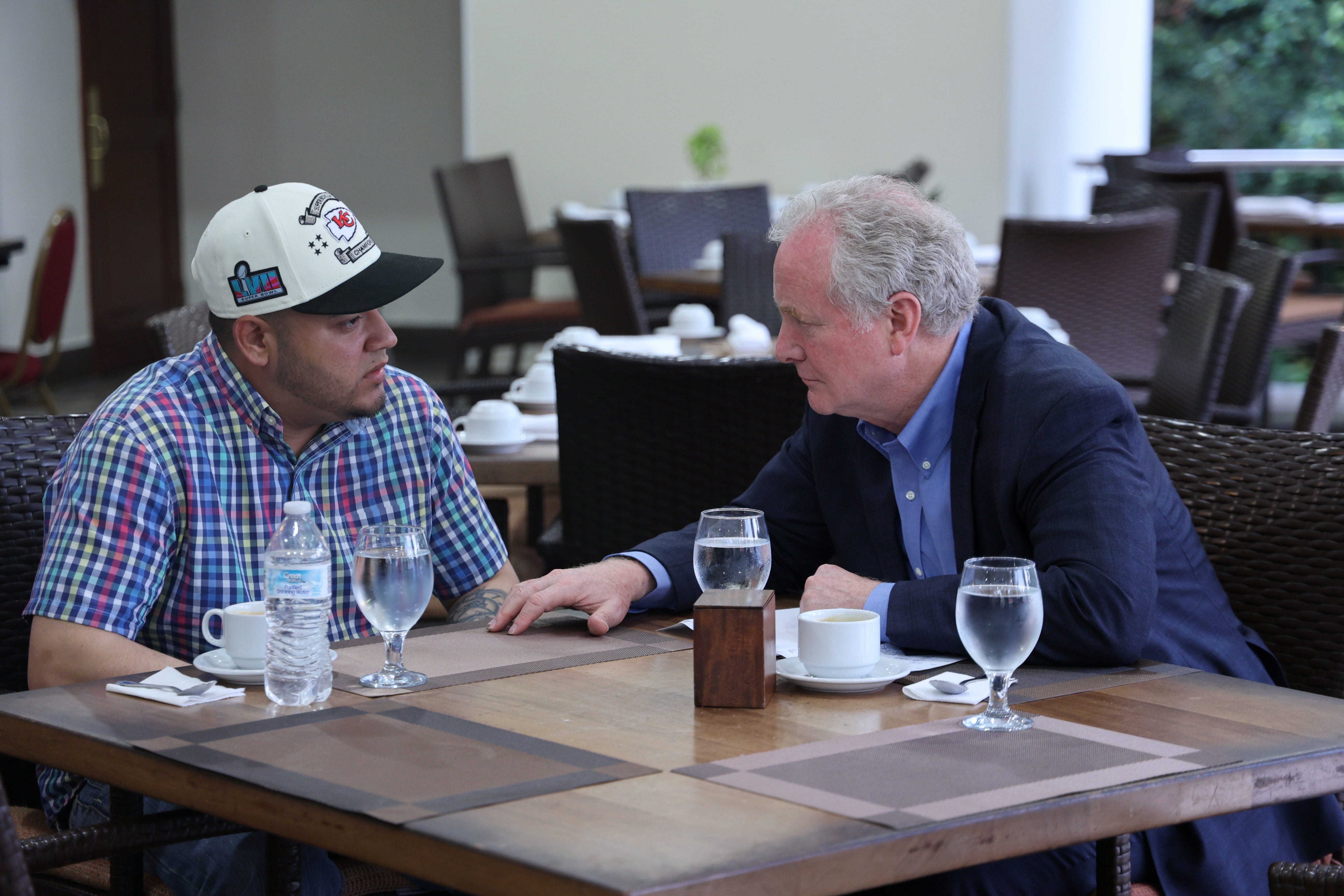 Abrego Garcia is still incarcerated in El Salvador. He is alive, as far as we know, in some part thanks to the devoted efforts of a handful of Democratic politicians who have spent both time and political capital to personally seek after his status and well being. These acts are some of the most effective a politician can take: what else are our representatives for, if not to physically represent and advocate for the people under their care? Maryland Sen. Chris Van Hollen, for example, recognized a simple truth: that his personal profile was large enough that he could physically travel to El Salvador and challenge its government, even one allied with a hostile political party in his own country, on behalf of his constituent without risking his own safety. They weren’t going to put him in jail, so he could show up and demand answers. This got results: see the picture above.