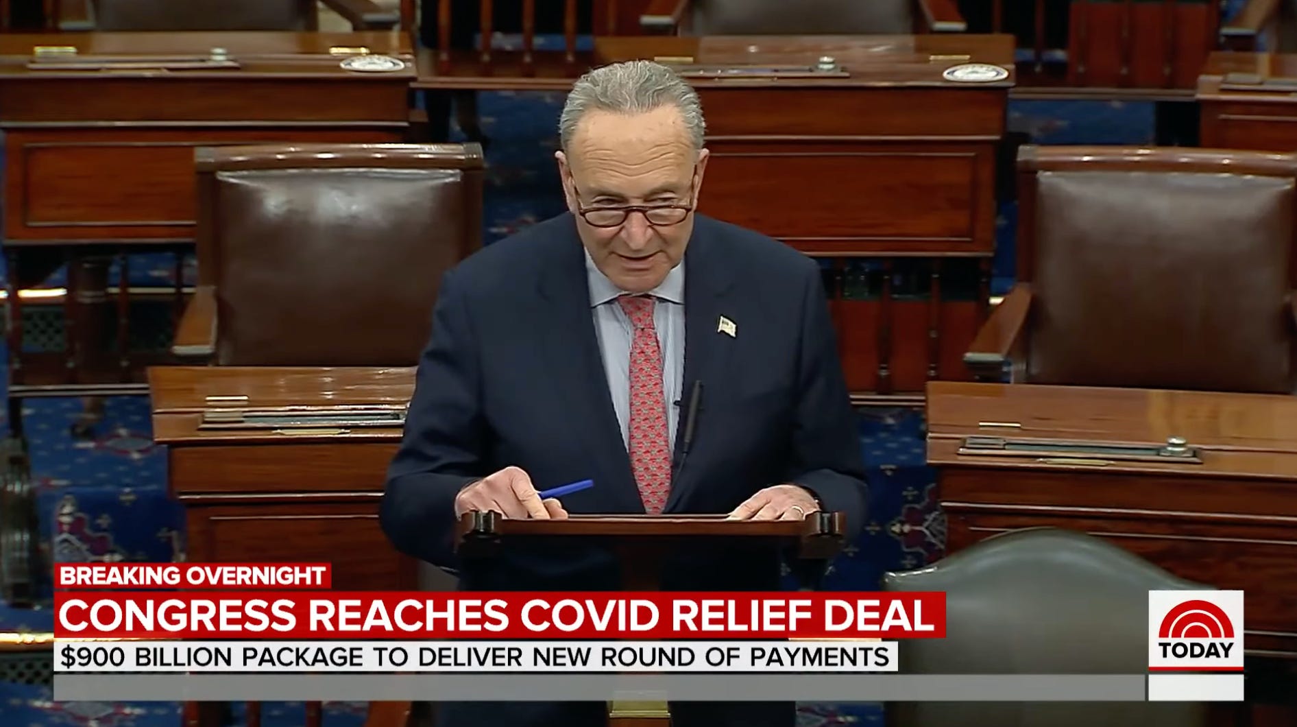 After weeks of mind-numbing negotiations, Congress has agreed on a deal for a new COVID relief bill. The $900 billion package is expected to include a new round of stimulus checks and unemployment assistance, but at half the levels of last spring's CARES Act; the checks will be capped at $600 instead of $1200, and the unemployment benefits, which will last for 11 weeks, will top out at $300 instead of $600. There is also some money for small businesses and vaccine distribution, and a month-long extension of the federal eviction moratorium, among other things. There is no money for state and local aid.