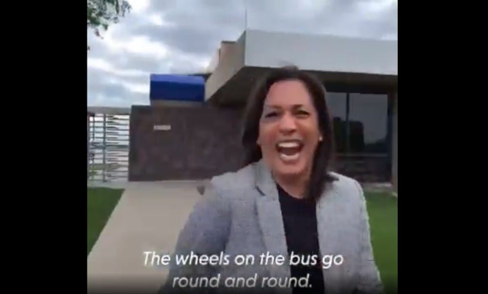 Where did this person find this?? Was this put on YouTube in like 2008? Does it still exist? These are the types of questions that immediately came to my mind, because it is diseased and had some dim memory of seeing this thing when it first came out. But none of this is the proper response to this video. The proper response is “lmfao incredible” which I think is what I typed in my DMs to her although I will not go back and fact-check that. It’s possible that interacting with this video made other similar political content appear on KaraTwitter, because then I started getting a lot of other videos and posts, almost entirely of Kamala Harris.