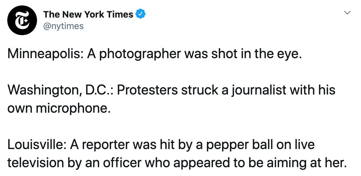 On Saturday, The New York Times published a piece about violence suffered by journalists while covering the protests.