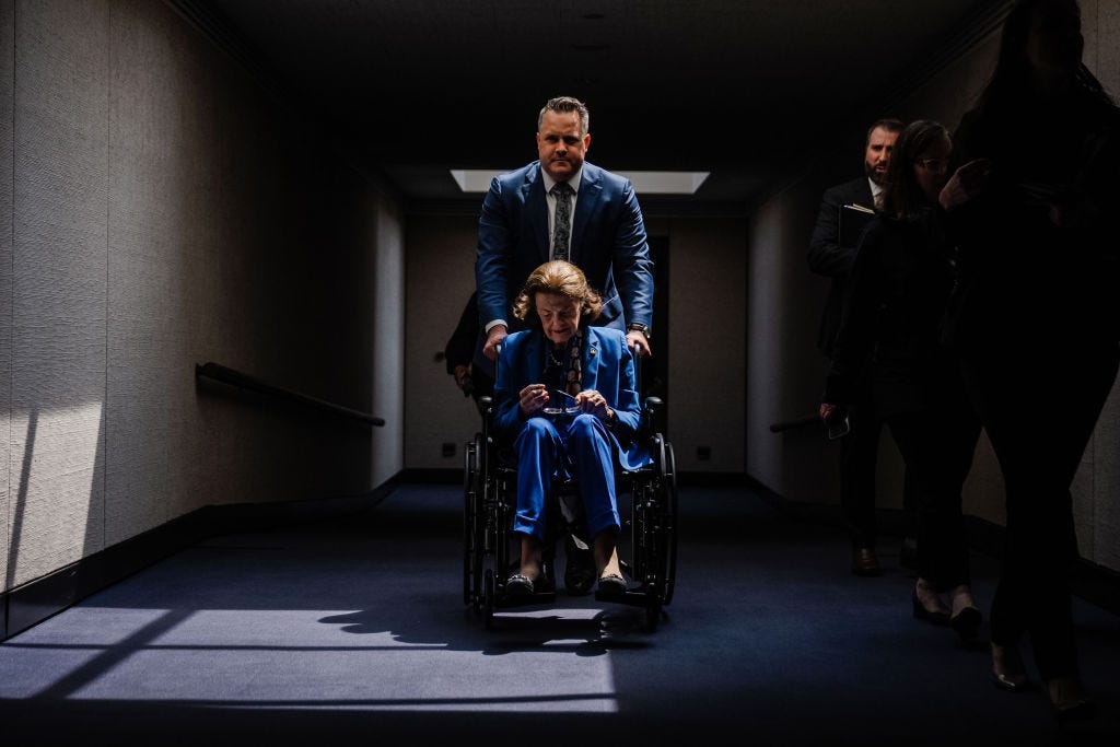 About a month ago I wrote a concise and (I thought) sensitive blog about the limitations of a gerontocracy, and the moral imperative to pave the way for the next generation, rather than gate-keep them out of power. That blog was inspired by the continuing struggles of California Sen. Dianne Feinstein, who is (sort of) back at her elected post after recovering from a debilitating case of shingles and not recovering from a (suspected) debilitating case of dementia. This is not that blog. We are past that now. This blog would like to point out something else, namely: What the fuck man. Come on. Let’s end this charade.