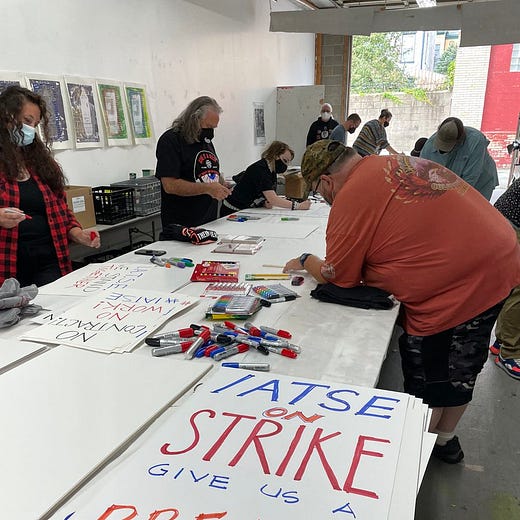 It feels like this recent uptick in organizing activity started with IATSE, the International Alliance of Theatrical Stage Employees, where an eye-popping 99 percent of 60,000-plus members voted to authorize a strike, citing concerns about inordinately long hours, no lunch breaks, and other indignities created by the pressures of ramped-up content creation for streaming services. They're now set to go on strike Monday unless a deal is reached in the next few days.