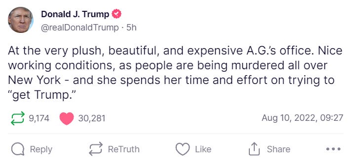Donald Trump, our brave and loyal former leader, is currently standing (sitting) in front of a dastardly array of Deep State law enforcement agents (the New York Attorney General’s office), forced to participate in yet another Partisan Witch Hunt (investigation into whether or not he fraudulently inflated the value of his assets to cheat on taxes).
