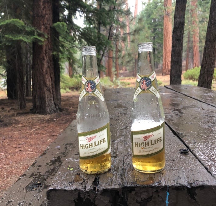 We fretted for a few hours while eating cheese sandwiches and drinking Miller High Lifes in the car as the rain pelted down on us. We laughed about how unprepared we were for this. We acknowledged that we might be sleeping in the car.