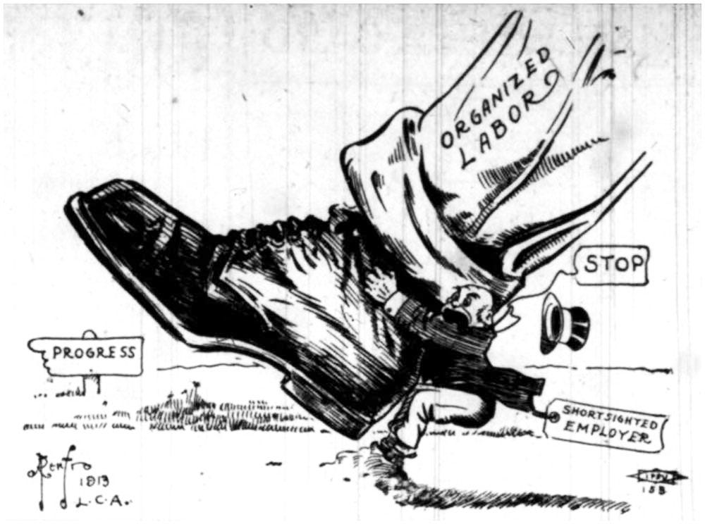 Image: Cartoon published in the Seattle Union Record in 1913. Wikimedia Commons // Public Domain