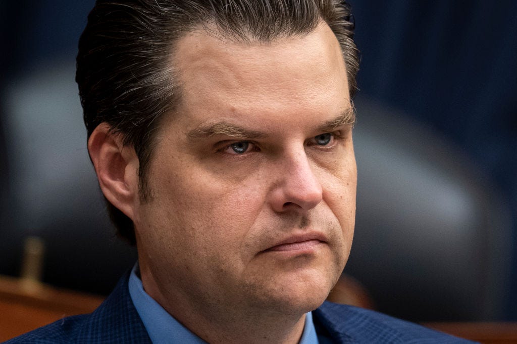 More interesting is Matt Gaetz, the subject of this blog. Gaetz is “a fascist and a total scumbag,” as Paul put it in our Slack. He’s also the center of gravity of the GOP House caucus, which is bad news all around. Although Gaetz thinks pretty highly of himself, within the hallowed halls of Congress he might be the only one. As New York GOP Rep. Anthony Despo told reporters on Tuesday: “The consensus is that Matt Gaetz is an asshole.”
