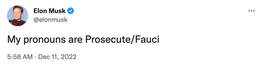 Musk, a bear of very little brain but very significant wealth who recently purchased a company called Twitter, started his weekend in a seemingly chipper mood. He was in his element, sharing some of his famously hilarious jokes with his many adoring fans.