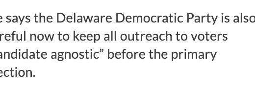 While Delaware Democratic Party executive director Jesse Chadderdon told Discourse Blog that the party’s resources are focused on the general election, the party executive committee voted to endorse Coons. Scarane tweeted a Delaware Democratic Party mailer over the weekend that included Coons on its slate of candidates and questioned how “agnostic” the party really is in the race.