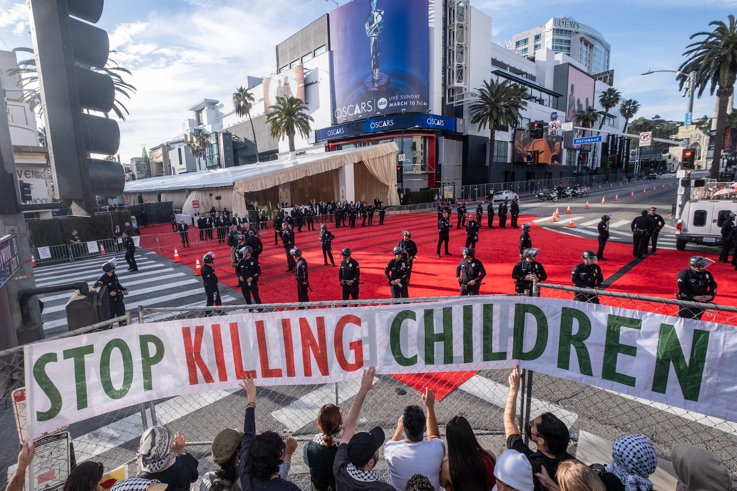 It turned out that Palestine was what the hell was going on. A protest against the war on Gaza was blocking the route to the Oscars, and chaos was the result. “Hundreds of protesters have shut down a major section of Hollywood during the Oscars red carpet, turning Hollywood’s biggest night into a traffic nightmare. With just a few minutes ahead of the telecast’s scheduled start time, much of the ballroom is uncharacteristically empty and people are running to their seats,” Variety reported.
