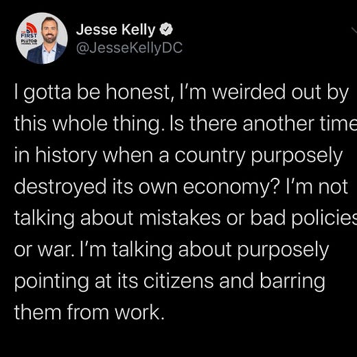 Aside from the fact that letting potentially millions of people die when they don't have to is, you know, extremely immoral; and that there's powerful evidence that easing restrictions too soon is a really bad idea; and that the idea that such a devil's bargain would actually save the economy is based on some very dubious assumptions, it pays to note the dichotomy that's being set up here: Either you destroy jobs forever and the economy is toast, or you keep the restrictions that are needed to save the most lives in place.