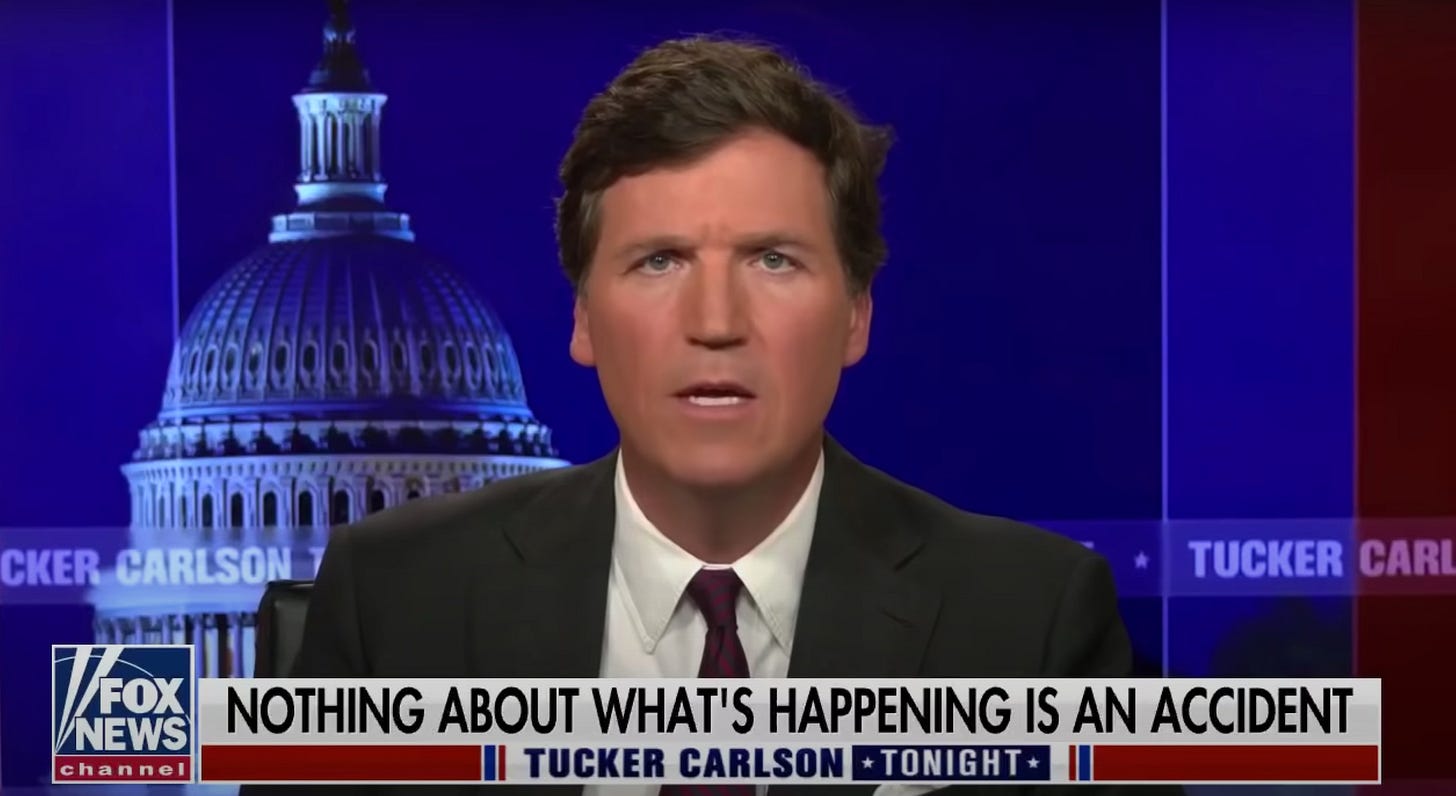 This should come as no surprise to anyone who’s paid even the slightest attention to Carlson over the past few years. The TV dinner heir and child of total privilege who claims to speak for the common man has long had an affinity for the most racist of conspiracy theories.