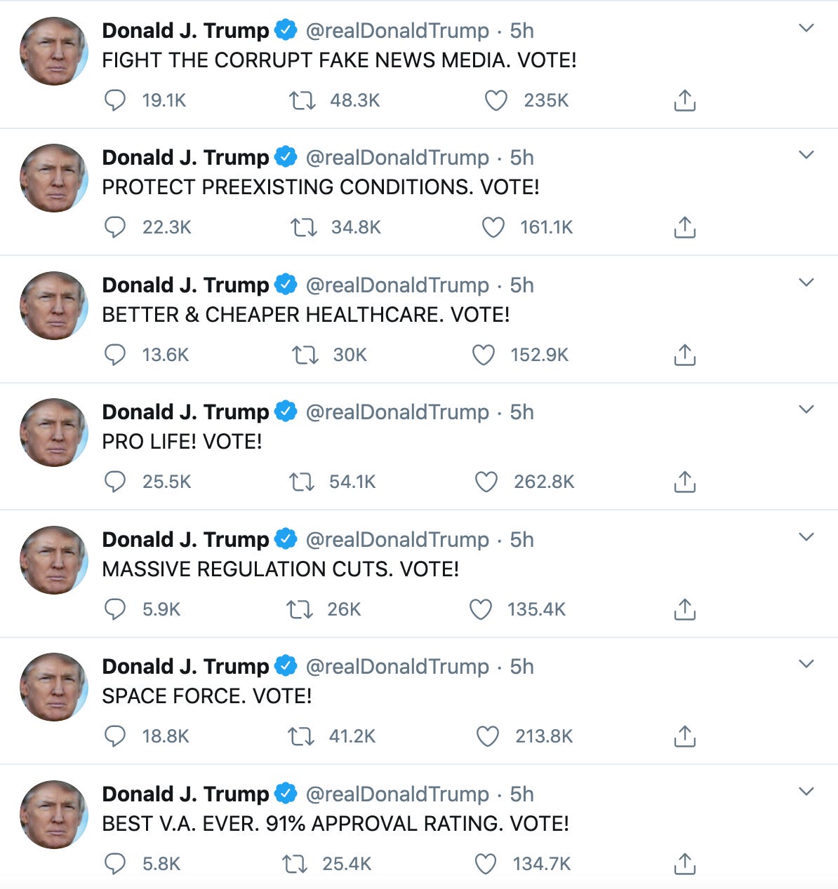 Our boy is in peak physical condition! He definitely didn’t immediately double over and start huffing through an oxygen mask the moment the White House doors closed. He won’t call into Sean Hannity while audibly struggling to breathe and yelling about how he’s NEVER FELT SO GOOD and no, he’s not still high off the meds, why are you asking??? He’s not going to stagger throughout the West Wing spraying sweat and saliva everywhere as he fights to stay upright. He told COVID to get lost and COVID listened! God bless the president!